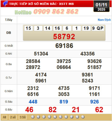 Mời Thành Viên xem lại bảng kết quả Miền Bắc kỳ trước:
