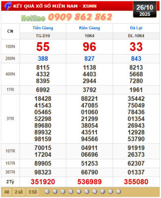- XSMN Chủ nhật ba đài Tiền Giang, Kiên Giang, Đà Lạt (Lâm Đồng)