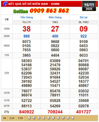 - XSMN Chủ nhật ba đài Tiền Giang, Kiên Giang, Đà Lạt (Lâm Đồng)