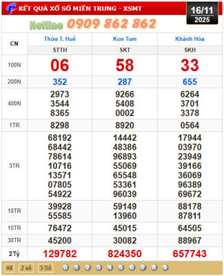 Xổ số miền Trung được mở thưởng vào lúc 17h15′ hàng ngày, Quay thưởng trực tiếp Xổ số kiến thiết các tỉnh/ thành miền Trung hôm nay Nhanh và Chính xác.