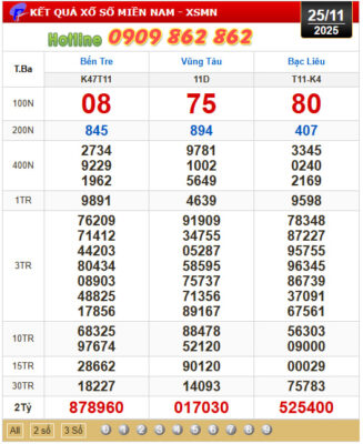 - XSMN thứ 3 tỉnh Bến Tre, Vũng Tàu, Bạc Liêu