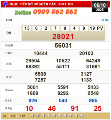 Mời Thành Viên xem lại bảng kết quả Miền Bắc kỳ trước: