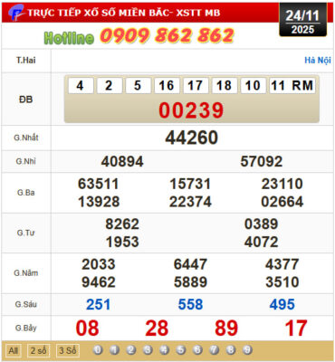 Mời Thành Viên xem lại bảng kết quả Miền Bắc kỳ trước:
