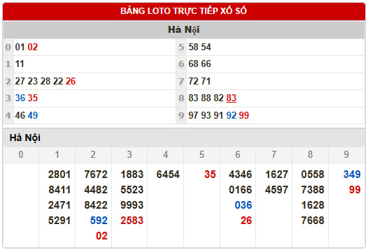Mời Thành Viên xem lại bảng kết quả Miền Bắc kỳ trước: