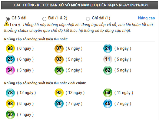 Mời Thành Viên xem lại bảng kết quả Miền Nam kỳ trước: