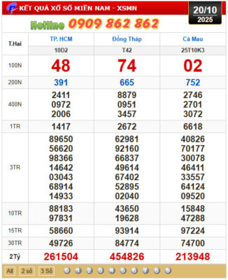 - XSMN thứ 2 đài HCM, Đồng Tháp, Cà Mau
