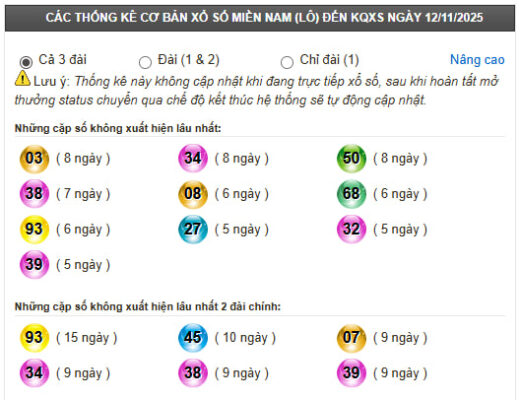 Mời Thành Viên xem lại bảng kết quả Miền Nam kỳ trước: