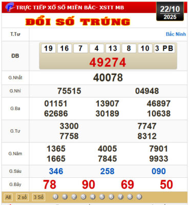 Mời Thành Viên xem lại bảng kết quả Miền Bắc kỳ trước: