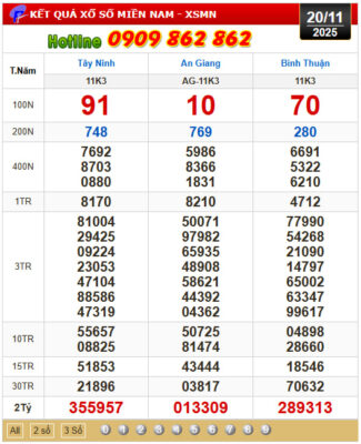 Mời Thành Viên xem lại bảng kết quả Miền Nam kỳ trước: