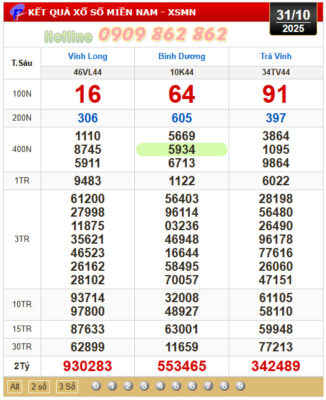 - XSMN thứ 6 3 đài Vĩnh Long, Bình Dương, Trà Vinh