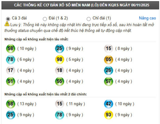 Mời Thành Viên xem lại bảng kết quả Miền Nam kỳ trước: