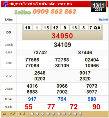 Mời Thành Viên xem lại bảng kết quả Miền Bắc kỳ trước: