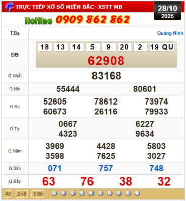 Mời Thành Viên xem lại bảng kết quả Miền Bắc kỳ trước: